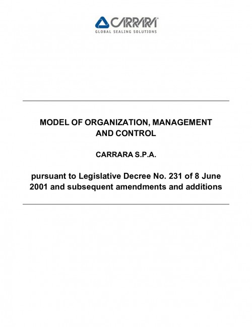 Carrara S.p.A. has adopted an Organizational, Management and Control Model pursuant to Italian Legislative Decree 231/2001 (“MOG 231”).