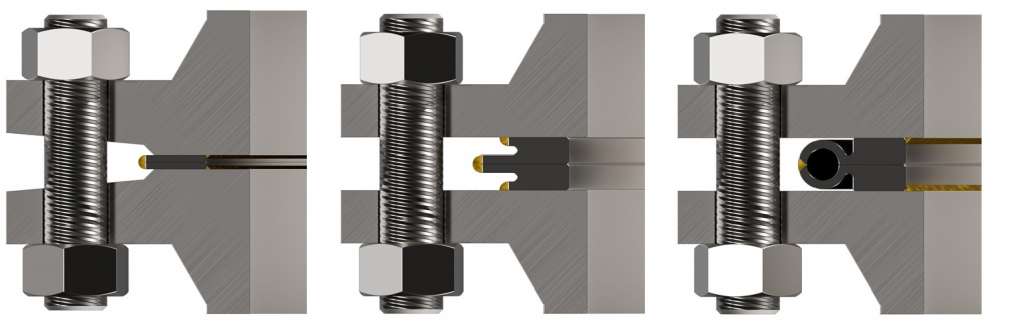It is therefore essential to ensure sufficient clearance between the gasket and the flange bolts; if this is not possible, the gasket body may be positioned within the outer diameter of the mating surface — a solution not applicable to membrane-type versions.