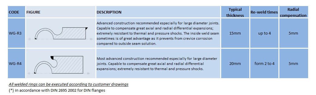 Quando as juntas de anel soldado são utilizadas em substituição de juntas convencionais em uniões existentes, deve-se considerar que se tratam de vedações autoenergizadas e, portanto, não requerem cargas de compressão para manter a vedação.