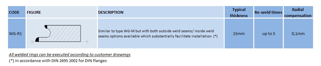 Uma junta de anel soldado com membrana geralmente é composta por dois anéis metálicos correspondentes, cada um com uma espessura aproximada de 4 mm (0,16 polegadas). Estes anéis são fabricados com materiais idênticos ou compatíveis com os das flanges, a fim de garantir: