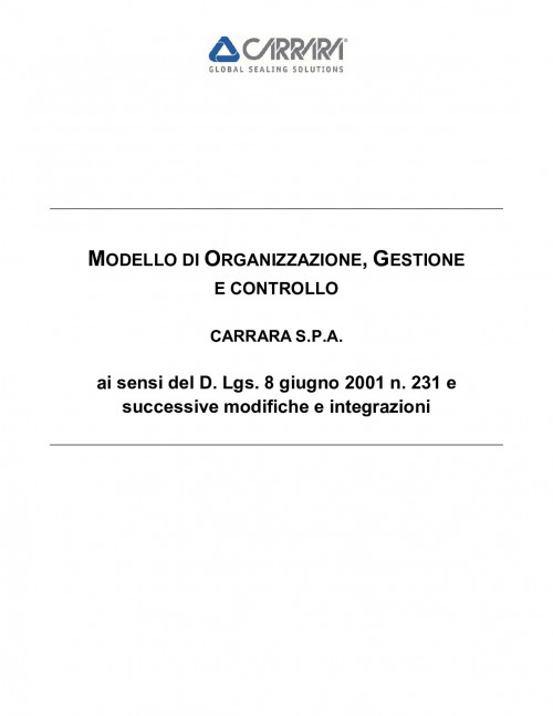 Carrara S.p.A. ha adottato un Modello di Organizzazione, Gestione e Controllo ai sensi del Decreto Legislativo 231/2001 (“MOG 231”).